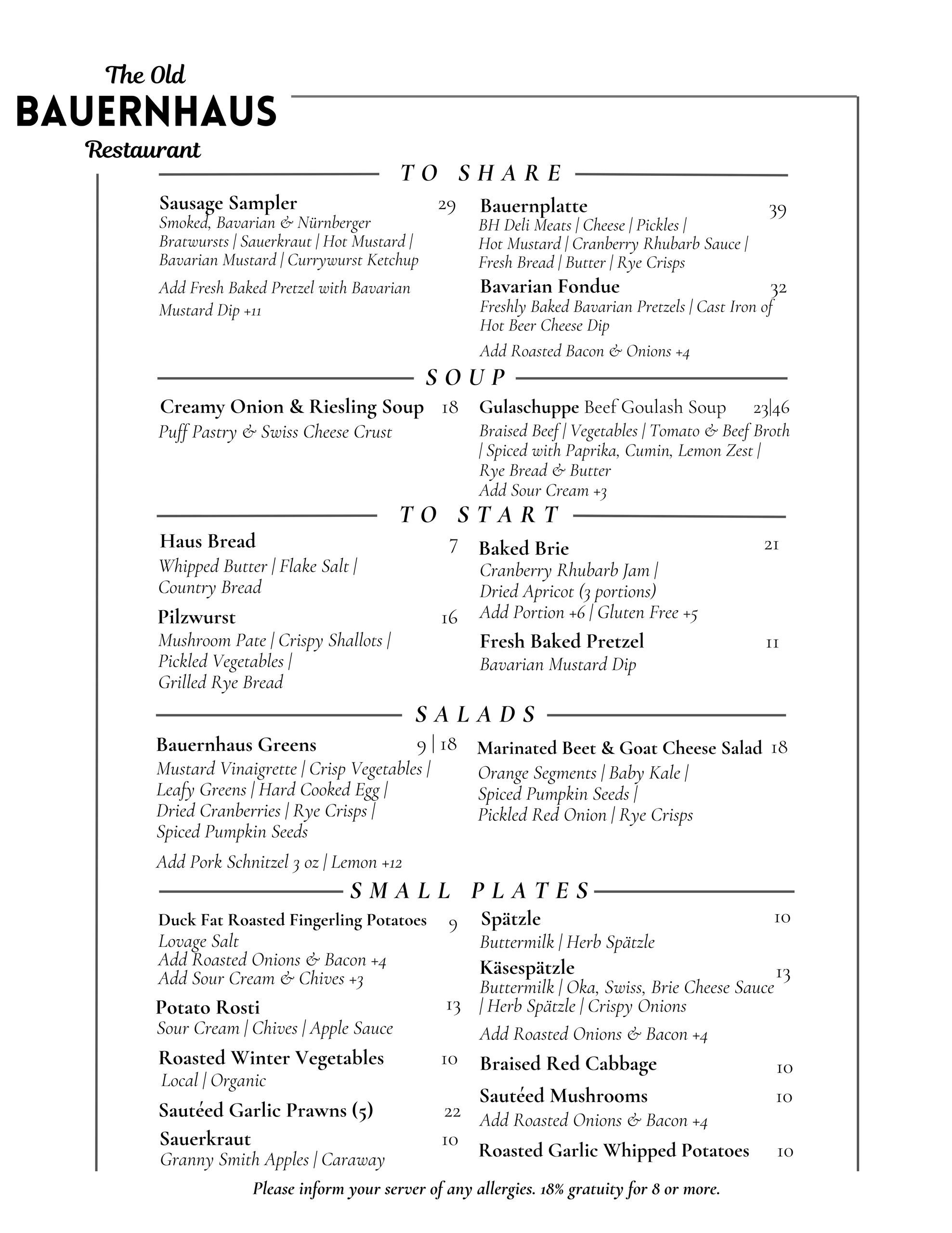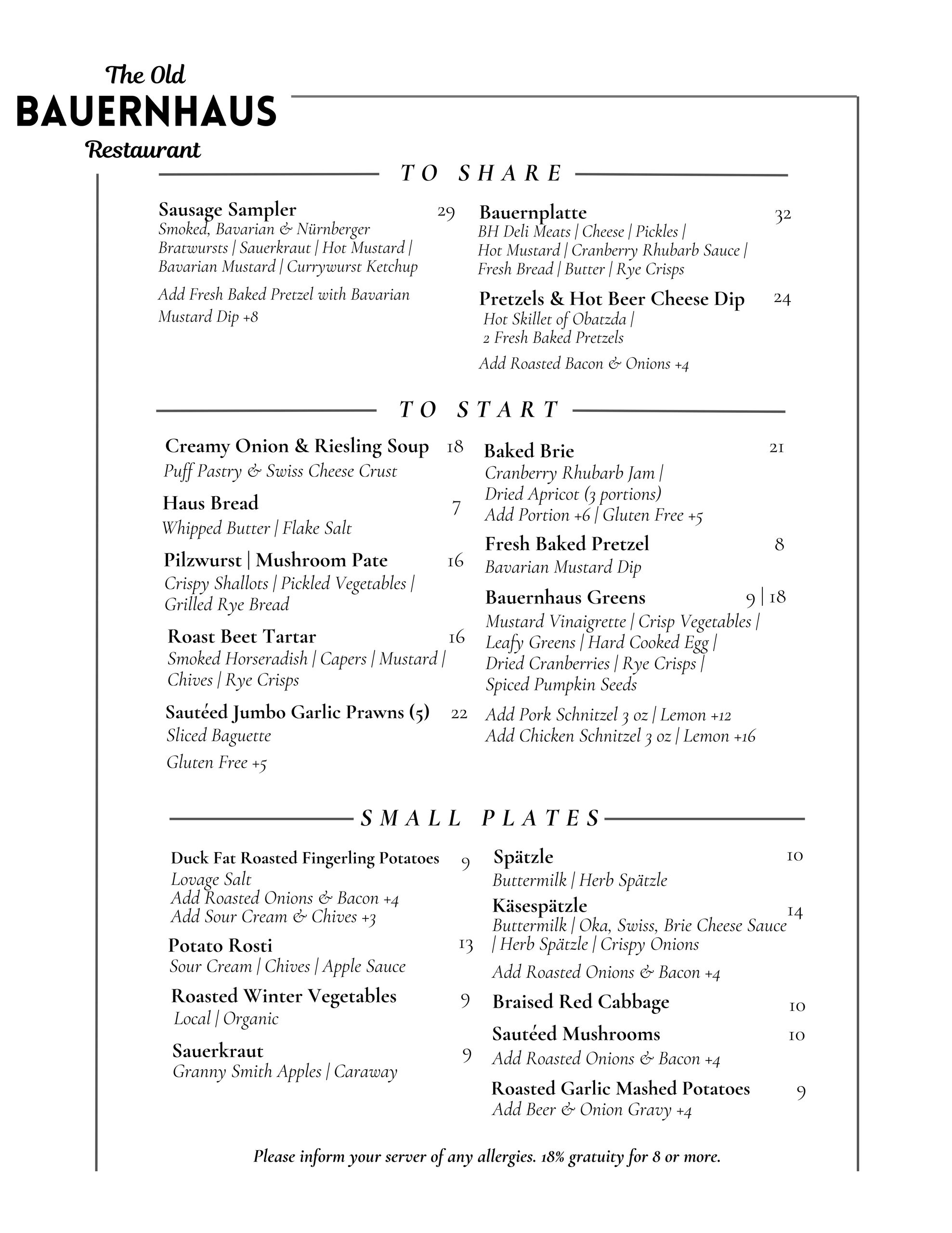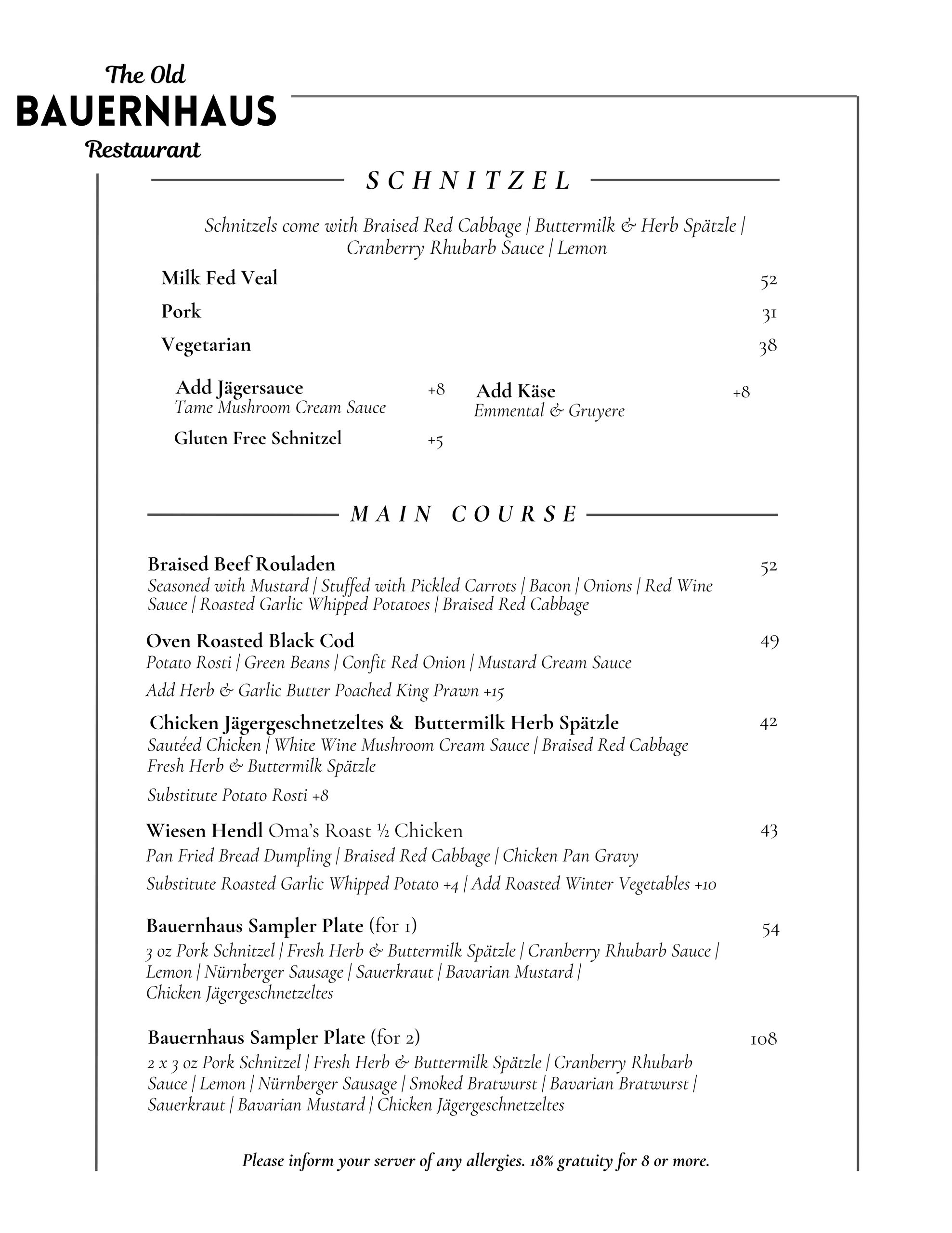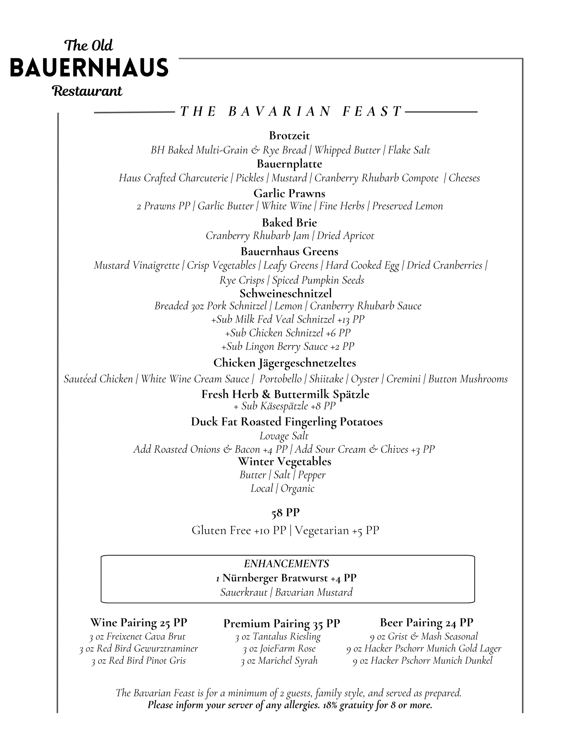 We would love to help you celebrate your year! The Old Bauernhaus offers private or shared dining options for your large parties - corporate, family, small business, friends - we are here for you!