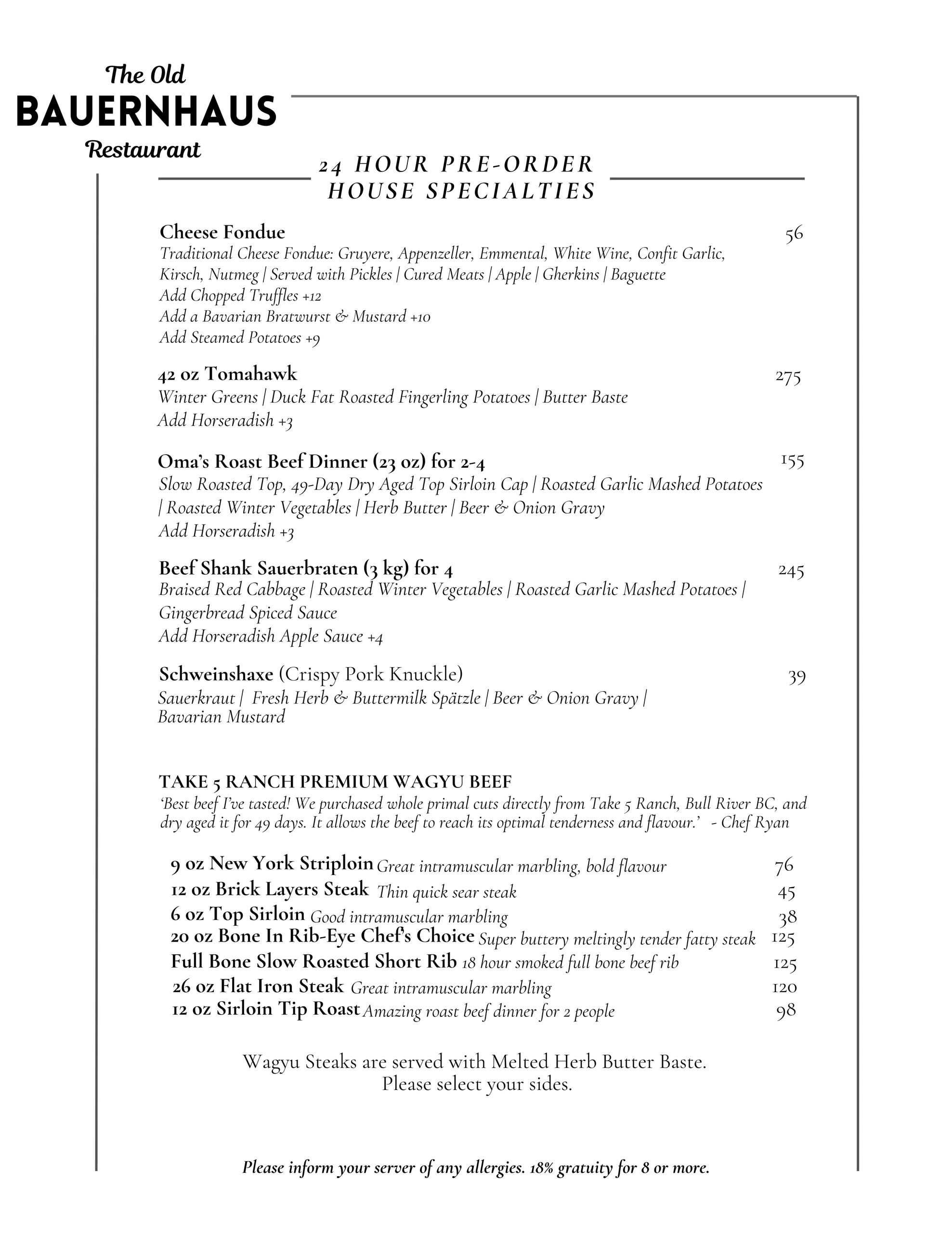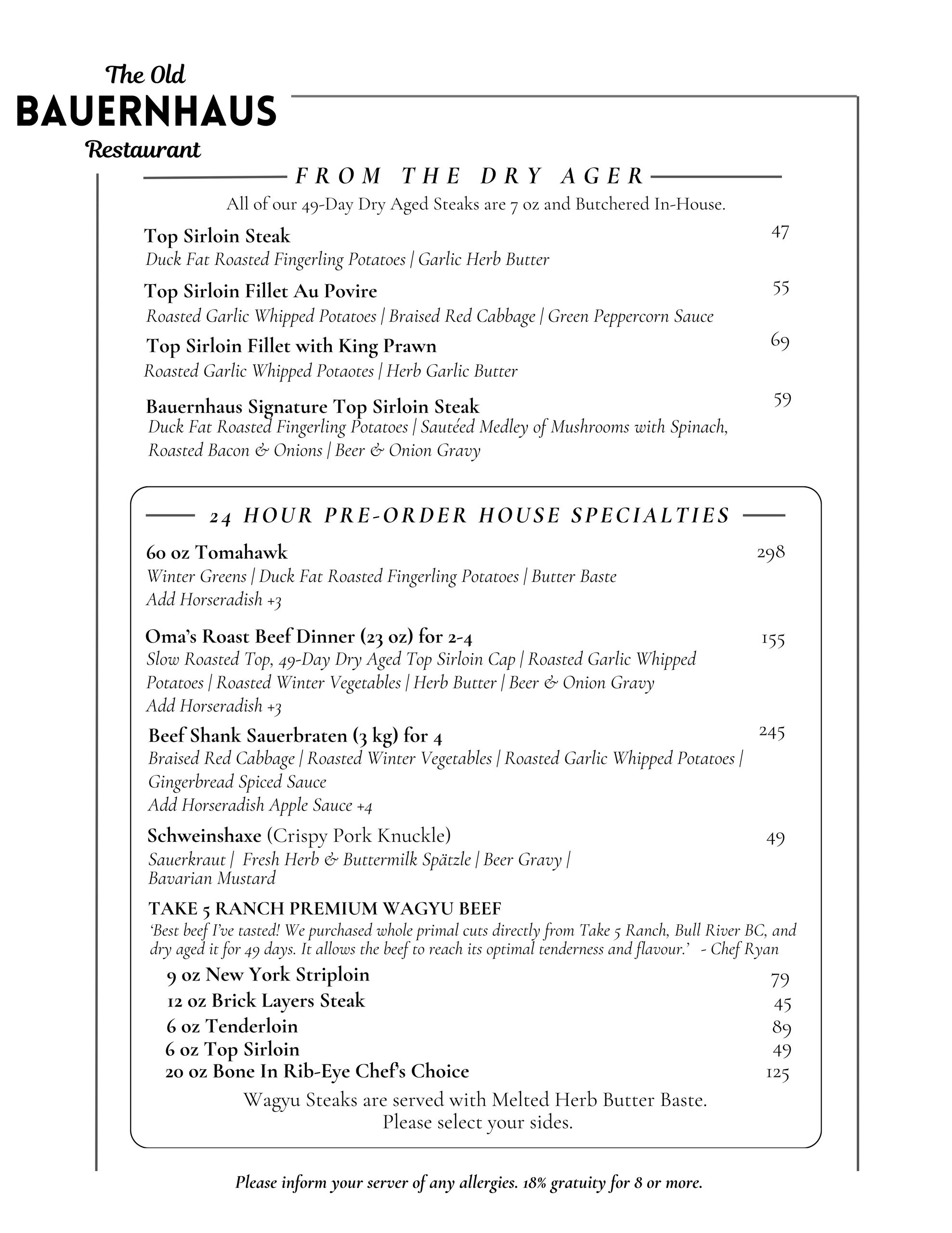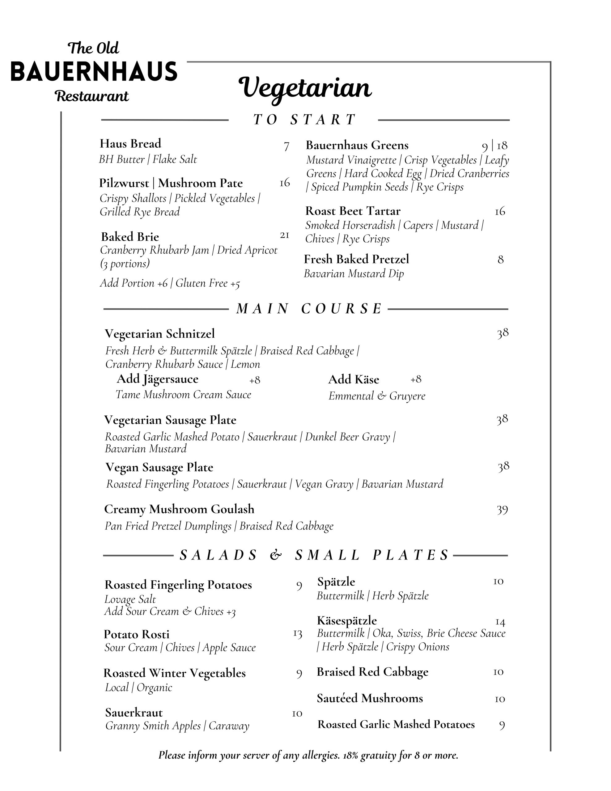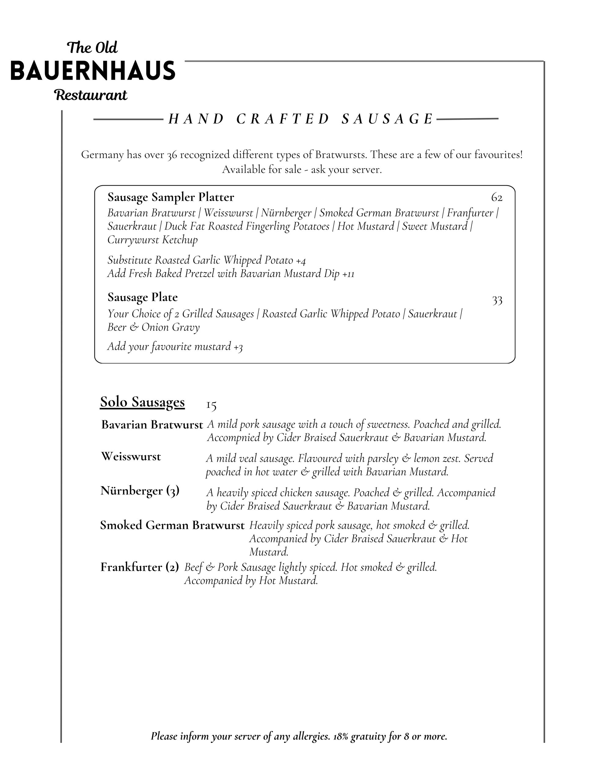 We would love to help you celebrate your year! The Old Bauernhaus offers private or shared dining options for your large parties - corporate, family, small business, friends - we are here for you!